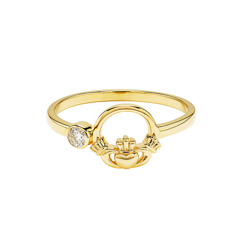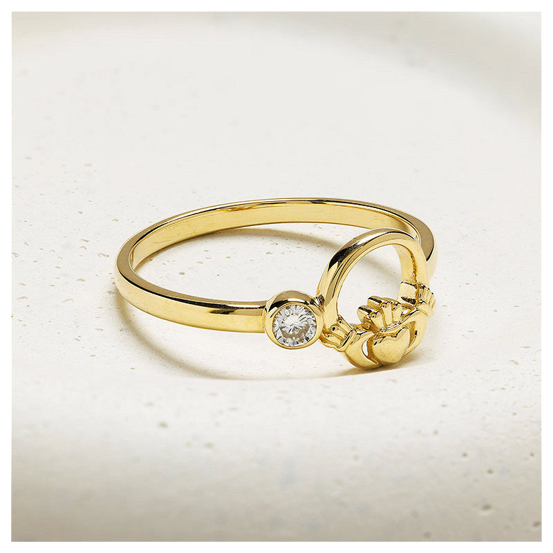 The 14kt Gold Claddagh Ring set with Lab Diamond is a stunning representation of Irish symbolism and modern luxury. Made from 14kt gold, this ring features the traditional Claddagh design at its center, with a brilliant 0.07ct lab-grown diamond set delicately on one side, adding a subtle touch of sparkle. The combination of the Claddagh symbol and the lab-grown diamond creates a meaningful and elegant piece that will stand out in any collection. This ring offers a perfect blend of luxury and sustainability, as lab-grown diamonds provide the same dazzling brilliance as mined diamonds with a smaller environmental footprint. Diamond Weight: 0.07ct, Width: 19.1mm, Height: 8.3mm
