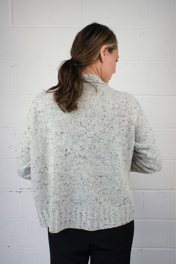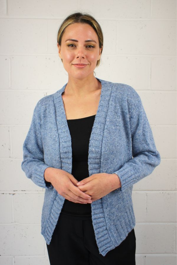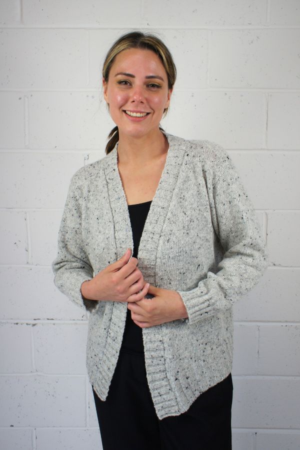 Falling to hip height, this snuggly one colour cardigan offers a delightful way to warm up in Donegal spun merino wool.