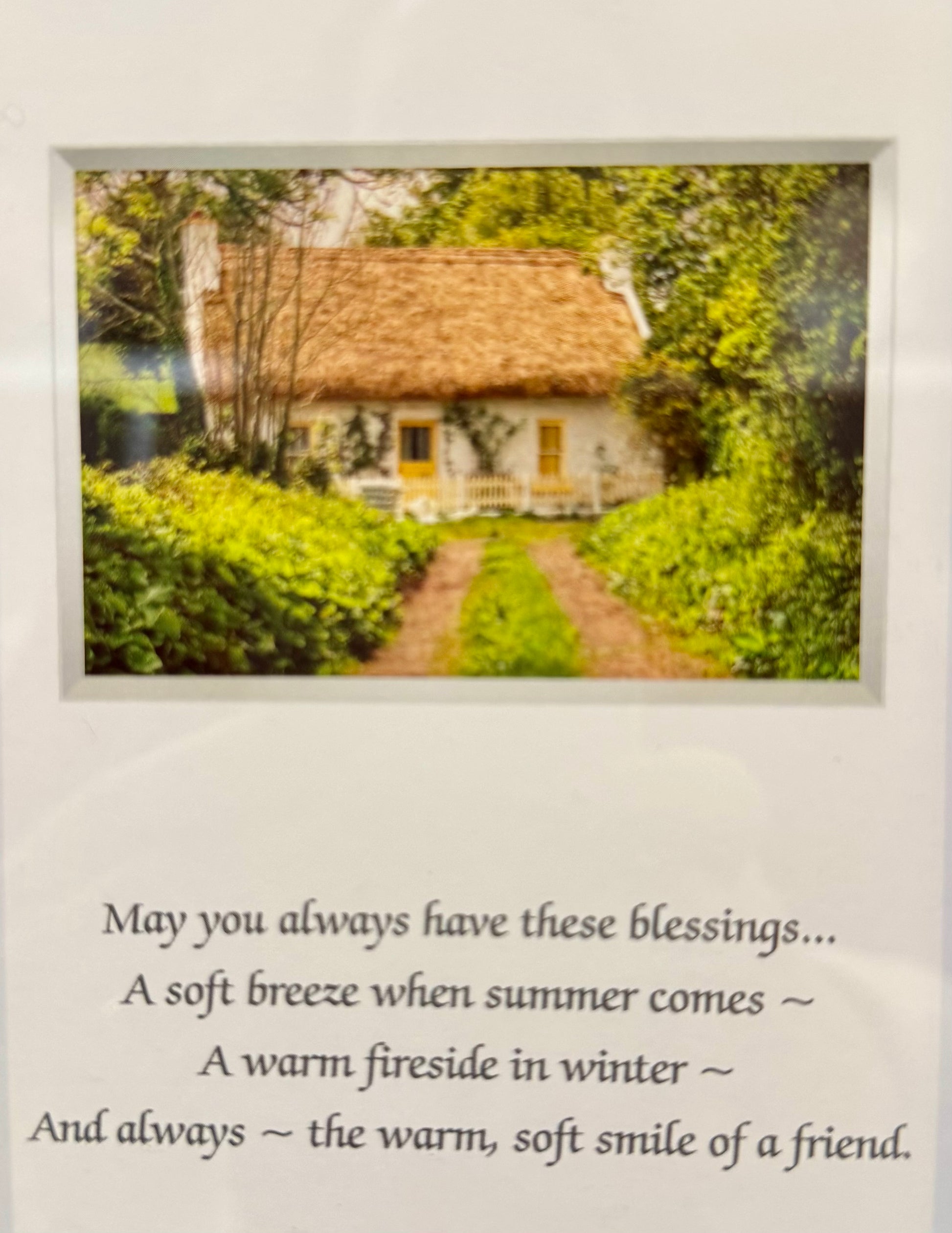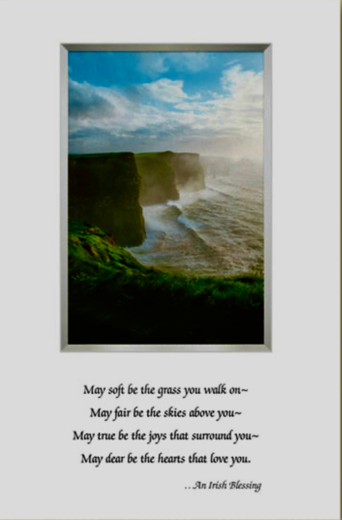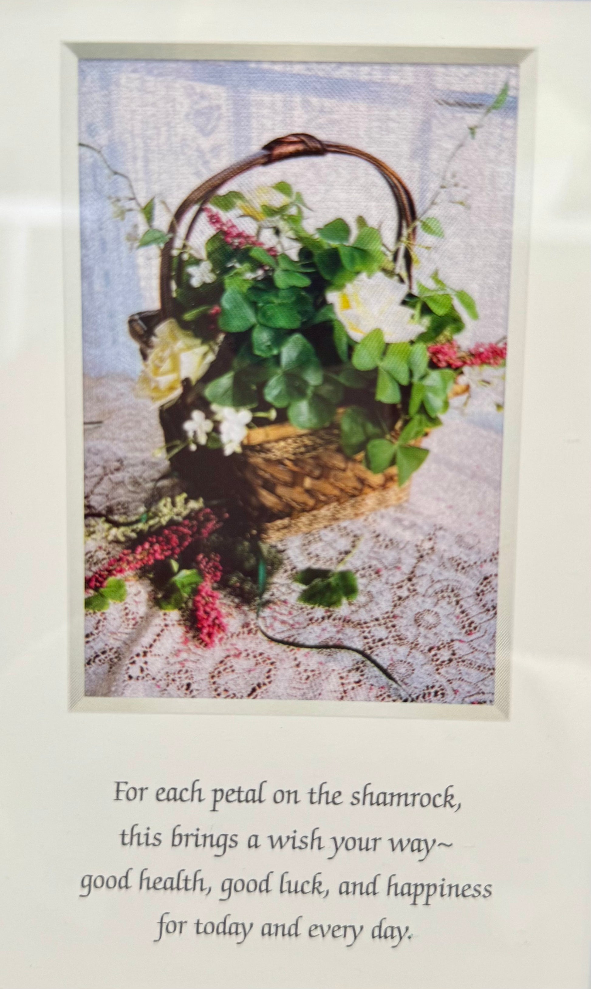 “Green Shamrocks”, a wonderful addition to our product choices features an eco-friendly line of framed prints. Each card is printed with one of our original photographs and accompanying verse on the front of the card. Blessings range from the thoughtful and inspirational to the light and whimsical. Each photo print comes framed in a gift box which makes a great little gift for family and friends alike – housewarming, hostess, stocking stuffer, etc.  Made in the USA.  Approx. 4.5" x 6.5" framed.
