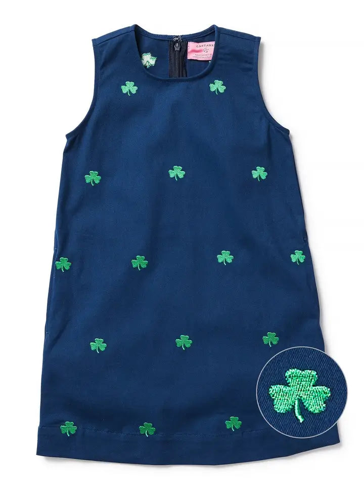 Mark St. Patrick’s Day in style no matter how young you are! This stretch twill Navy Shamrock dress is also ideal for cheering at fall football games, making it a playful way to showcase your Irish pride.