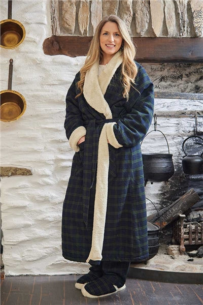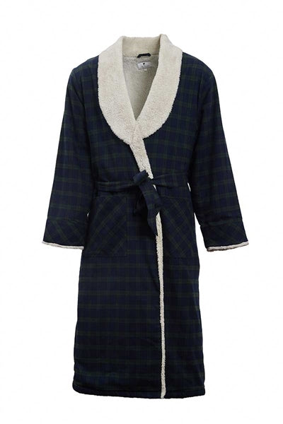 A traditional style featuring large front pockets and a matching tie belt, with fleece shawl collar and fleece lining the whole way through offering unparalleled coziness. Designed in the classic style with a belted tie and an inner belt for added security. Generously sized robe to ensure lasting comfort. Two front pockets. A hanger loop is included to easily hang it up when you're not wearing it. Unisex.